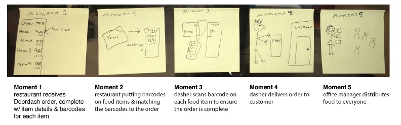 I Illustrated each key moments during the barcode scanning process that would be implemented to help ensure that there are no missing items from Doordash orders. The key moments were: